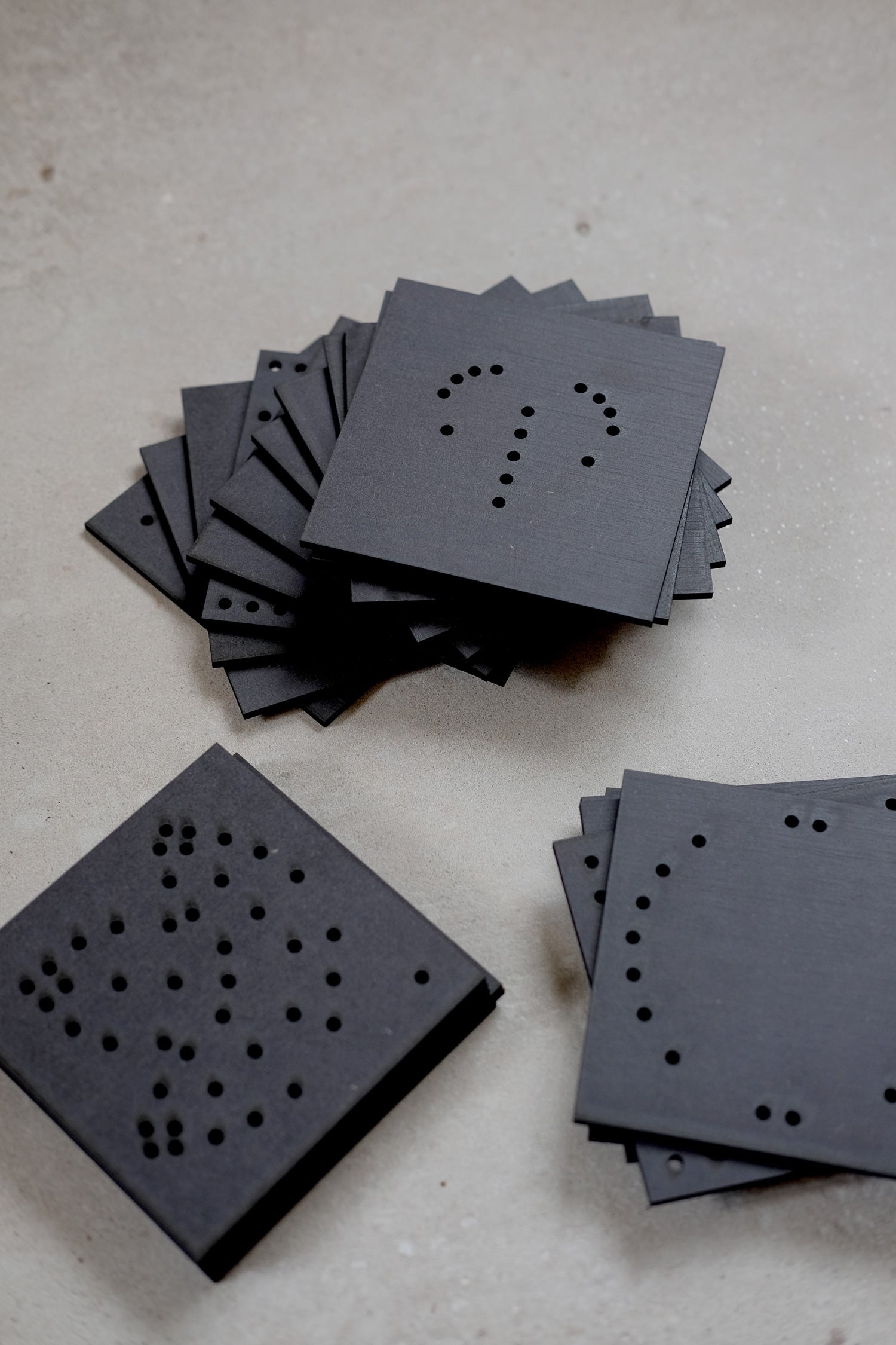 - Udprint af de 24 skabeloner eller laser-skårede MDF skabeloner fordelt på 3 sværhedsgrader.
